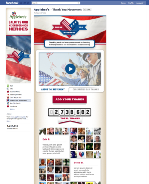 The experience had mirrored online hubs on both Applebees.com and Facebook . allowing for a greater number of submissions and sharing.